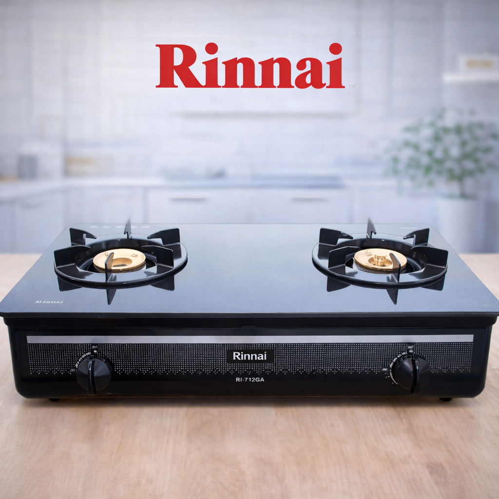 RINNAI : Kompor Gas Kaca 2 Tungku RI 712 GA(B) / 712 GA(W) / 712 GA(OB)