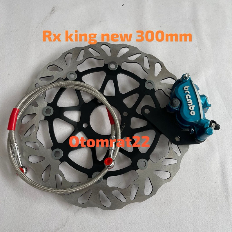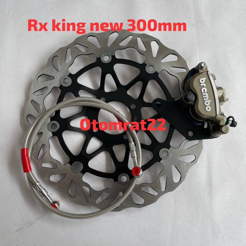 PIRINGAN DISC CAKRAM RX KING NEW 300MM 1PAKET KALIPER SAMURAI 2PISTON PLUS SELANG REM 95CM CARBON
