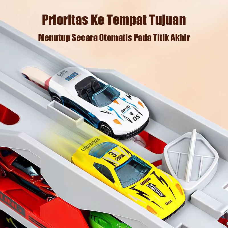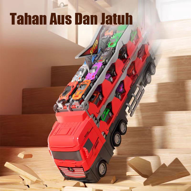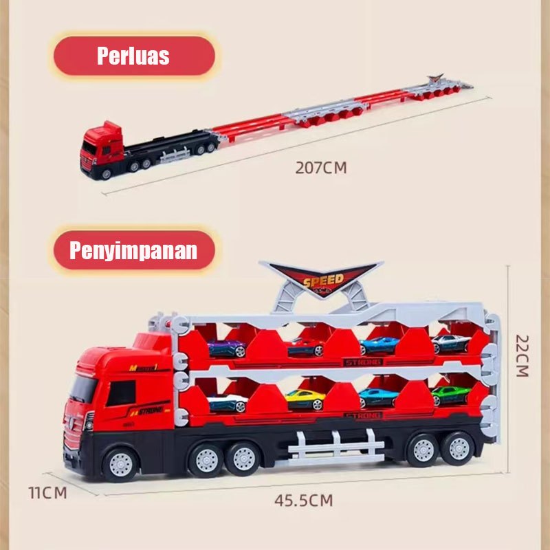 LUKATSU Mainan Anak Truk Transformasi 2in1 Truck Mobil Set 207cm Dengan Lintasan Balap Ejeksi Lipat Dua Jalur Murah Grat