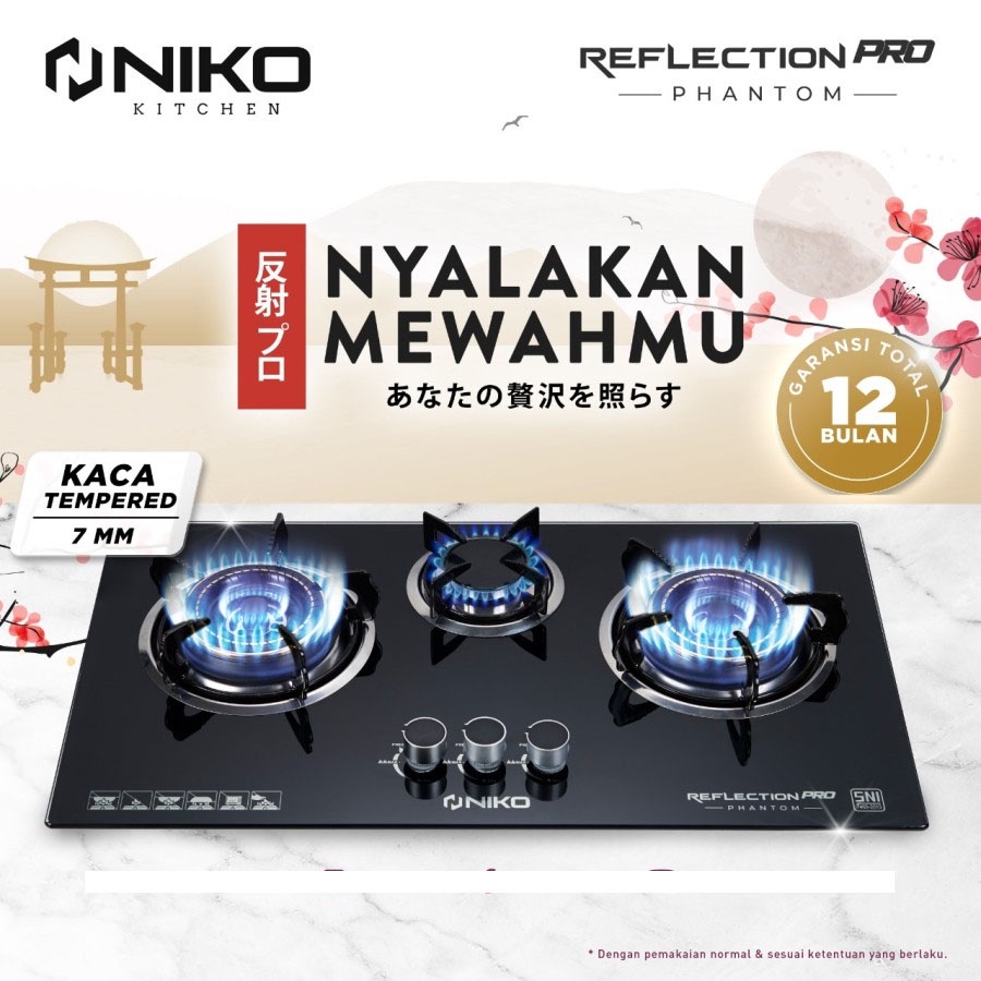 NIKO REFLECTION PRO PHANTOM KOMPOR GAS TANAM KACA 3 TUNGKU TEMPERED GLASS - BISA TANAM & MEJA / NIKO SAKURA / NIKO NEXT BLACK 2TUNGKU
