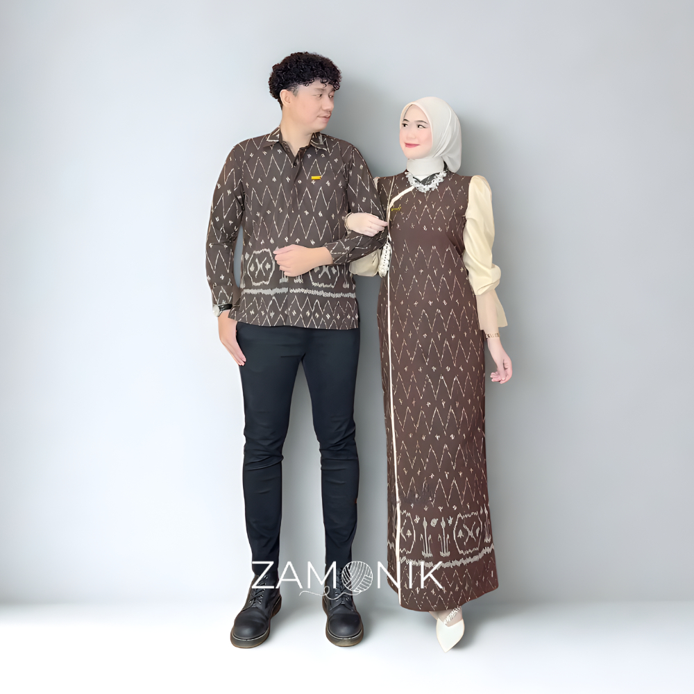 Zamonik - JENAR MAHOGANY Couple Baju Tenun Kondangan Terbaru Setelan Dress Kemeja Sarimbit Keluarga