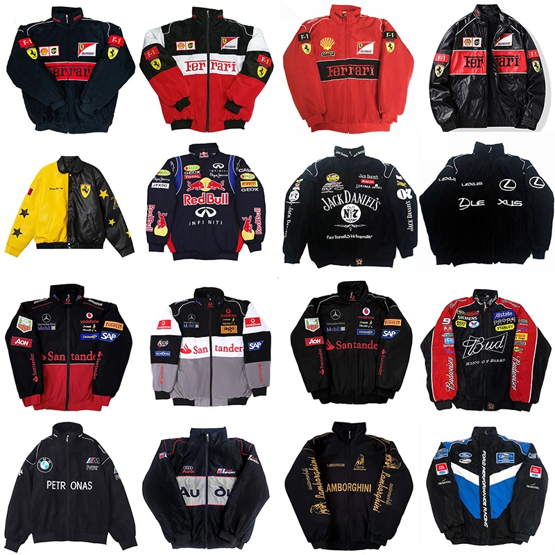 GTY Jaket F1 Racing Parasut Pria,Jacket Bordir Kulit Windbreak,Coat Vintage Bomber With Zipper