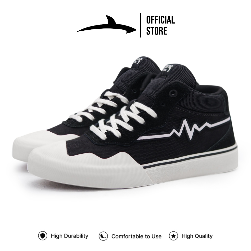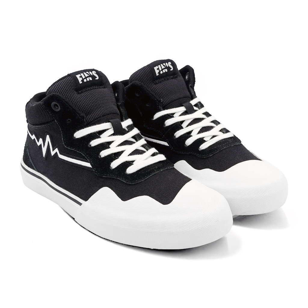 FINS Jas Black White - Sepatu Sekolah Hitam Sneakers Pria Wanita Unisex Casual Sekolah Original