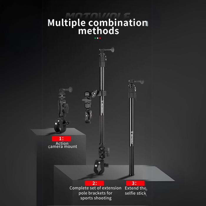 Motowolf Action Cam Holder Breket Extension Insta360 Gopro Flexible Camera Kamera