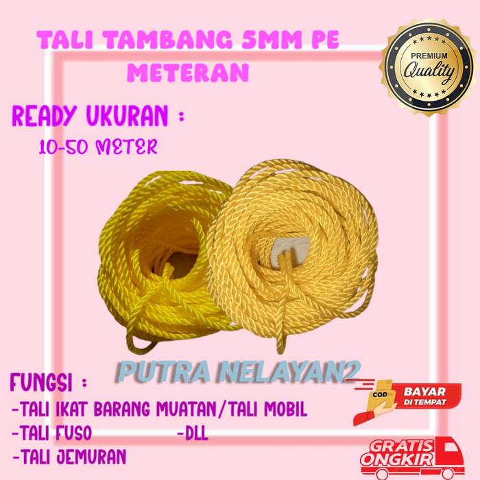 Tali tambang 5mm/ 50 meter. Tali ikat barang / tali serbaguna / tali tambang mobil / tali ikat tenda / tali pickup