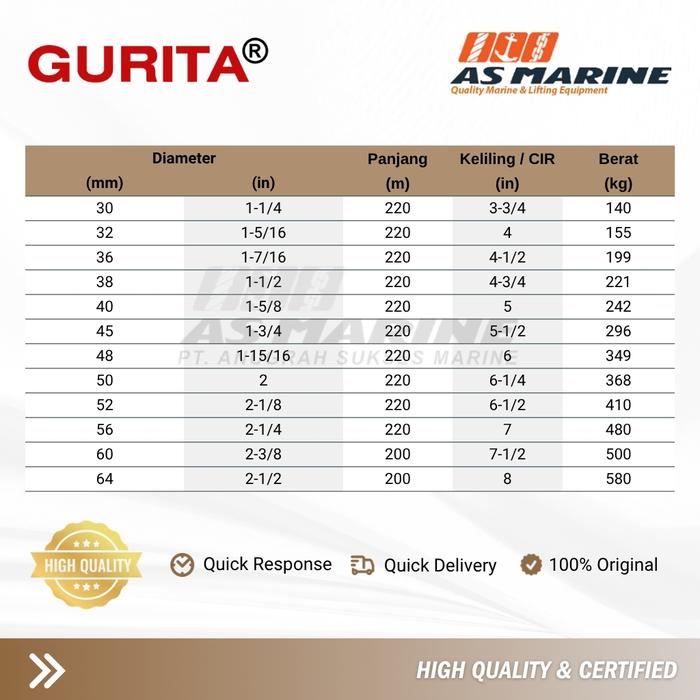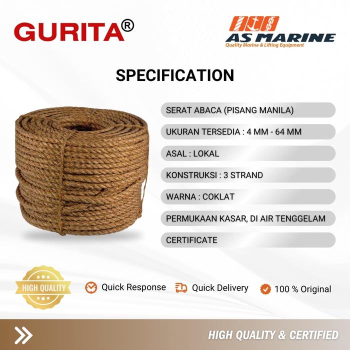 GURITA Tali Tambang Manila 10 mm x 220 Meter 3 Strand Tali Tampar Dadung Serat Abaka