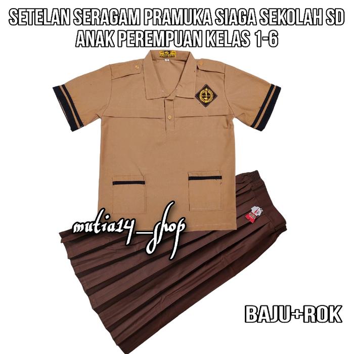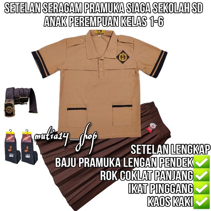 setelan seragam pramuka perempuan sekolah SD siaga lengan pendek rok coklat panjang pakaian seragam