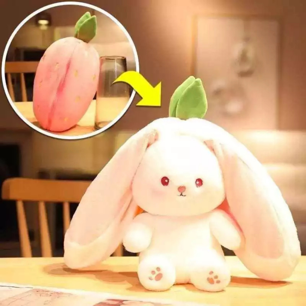 30cm Boneka Mainan Kelinci Strawberry Wortel Flip Resersible Lucu dan Lembut Gemoy untuk Cewek Murah Gratis Ongkir