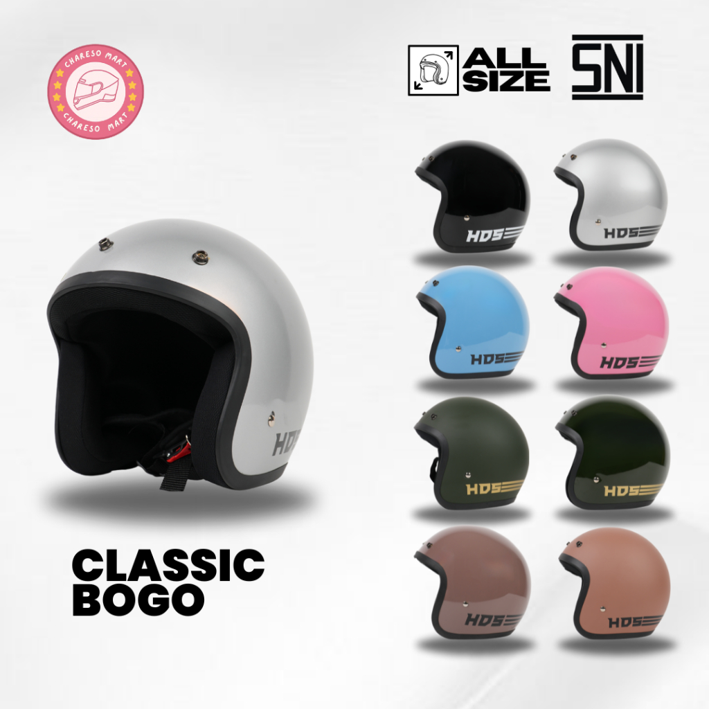 HDS HELMET Helm Bogo Classic Dewasa Helem Retro Pria Wanita Hijab Cepol SNI