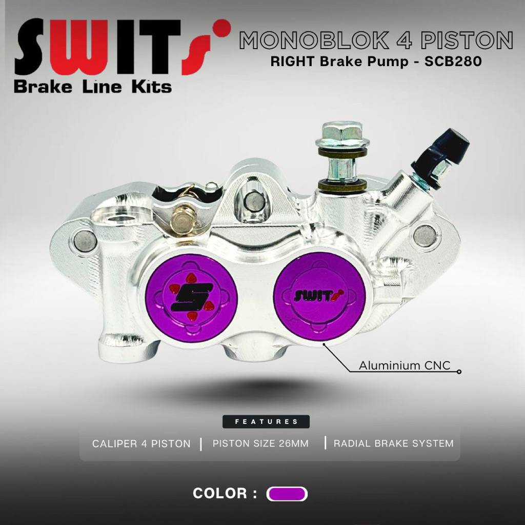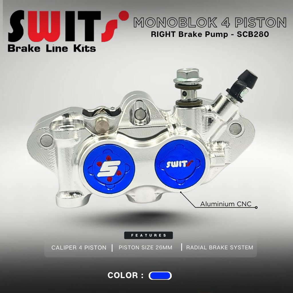 KALIPER SWITS MONOBLOK 4 PISTON KANAN UNIVERSAL MIO NMAX PCX AEROX XEON VIXION JUPITER MX RX KING VIXION DLL