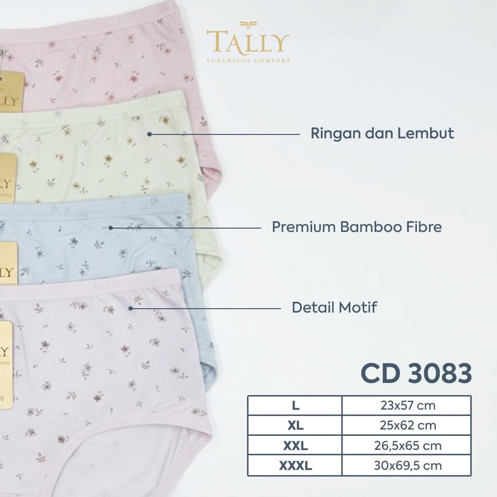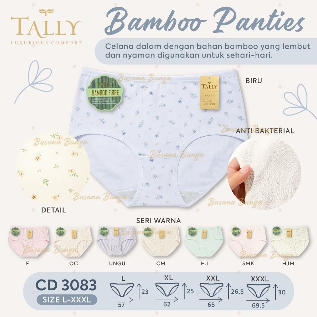 Tally 3083 Bamboo Flowers Special Edition (isi 3, 6, 12 pcs) Cd/Celana Dalam Wanita Semi Maxi Daily Panties Motif Bunga