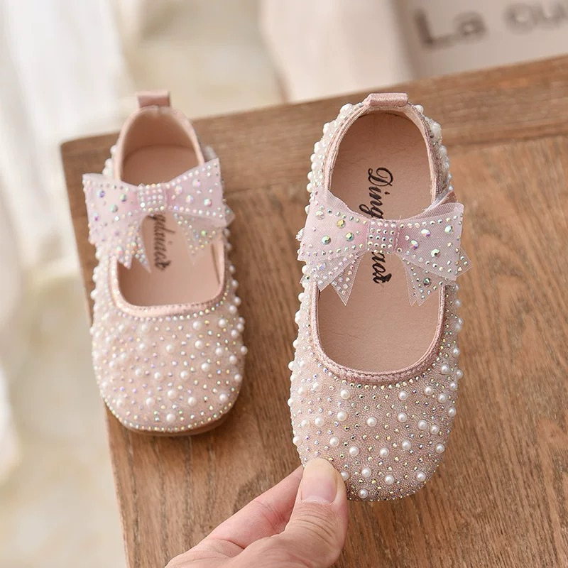 SVEKES - Sepatu Putri Baby Sepatu Mutiara Bows Cewe Sepatu Anak Versi Korea K006