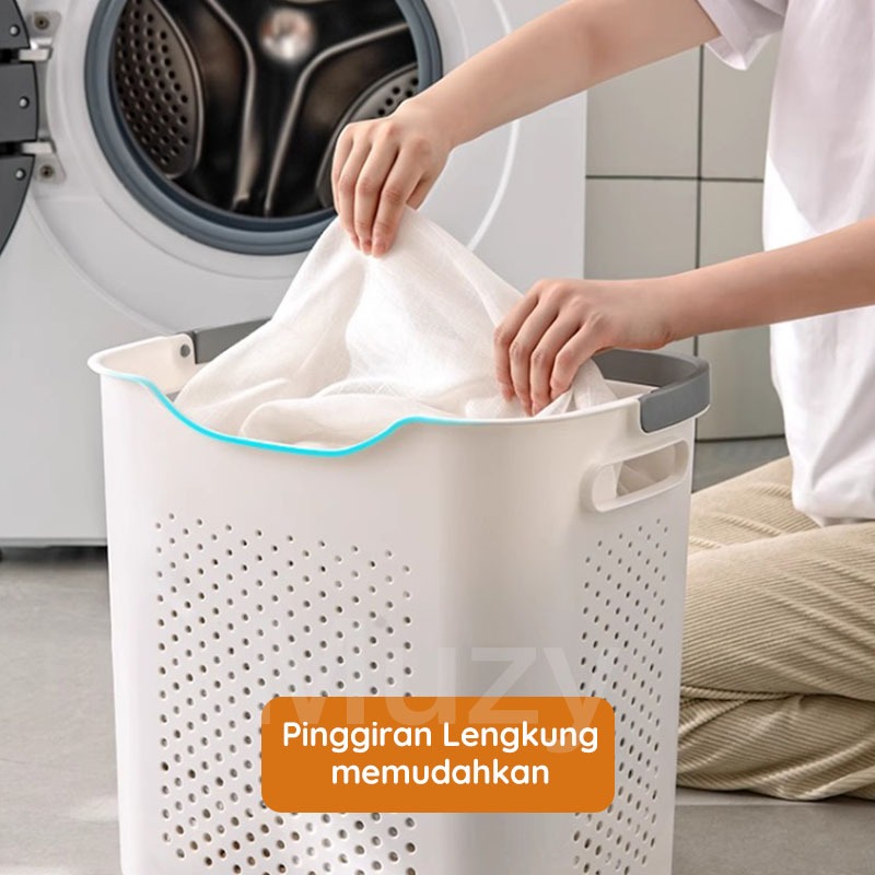 Muzy Keranjang Baju Kotor Plastik Lipat Pakaian Kotor Roda / Laundry Basket HSB822