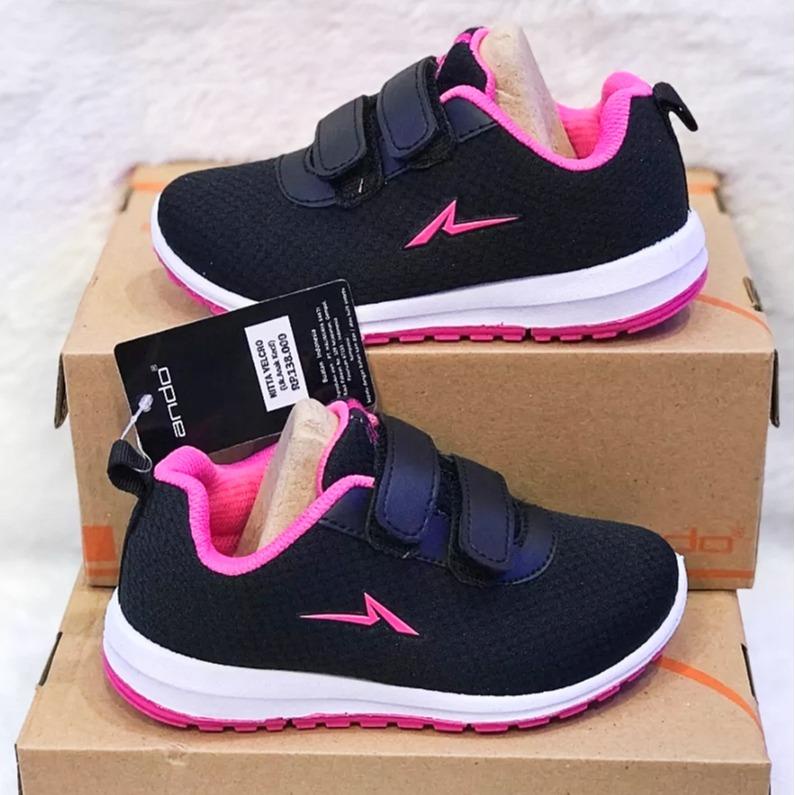 Sepatu ando nitta zora 29-36 Sekolah Anak Perempuan Paud TK SD Sneakers Ando Hitam Pink