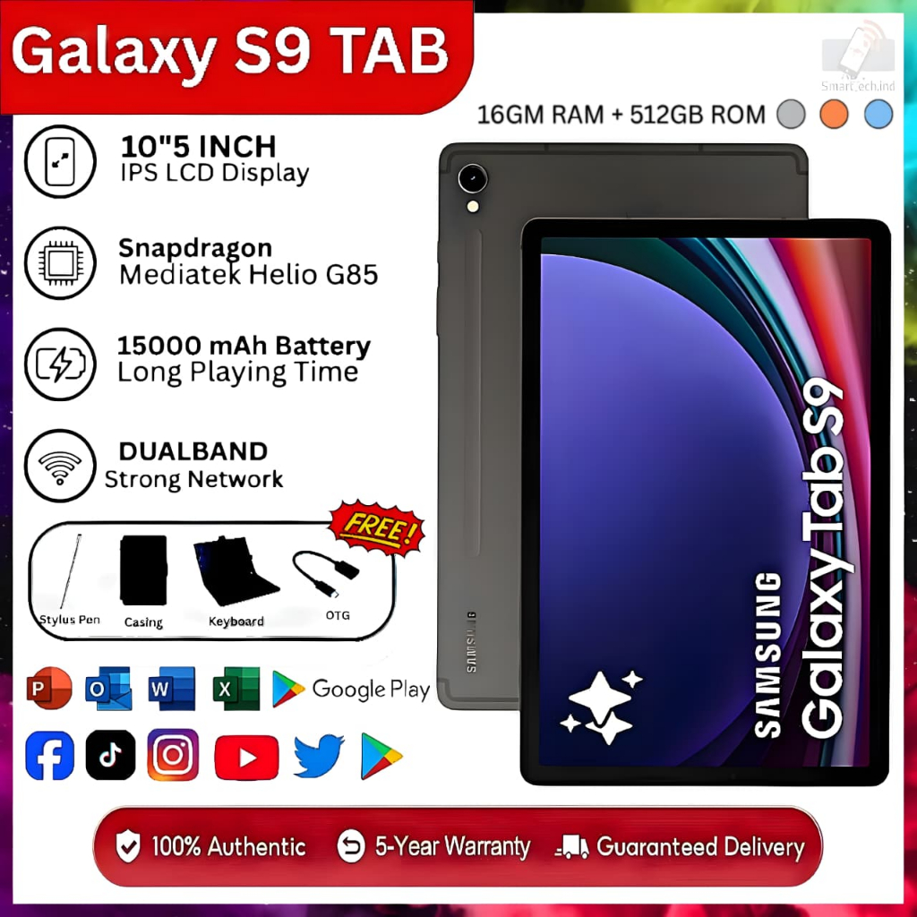 Samsung Galaxy Tab S9 5G Android Tablet | 12GB RAM + 512GB ROM | Dual SIM + Dual Camera | WiFi + Bluetooth | Garansi 5 Tahun