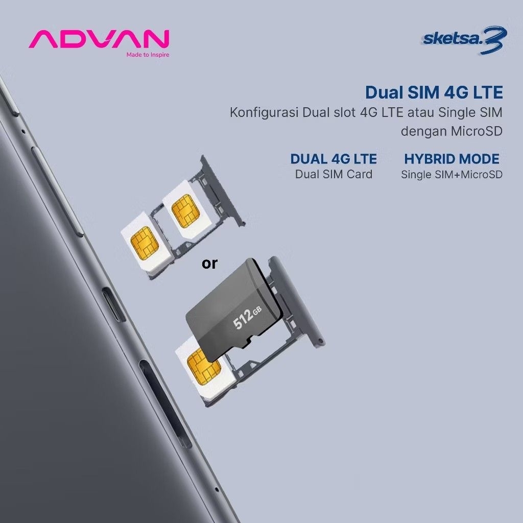 ADVAN TAB Sketsa 3 [8/128 GB] [ FREE Keyboard + Stylus] 10.1 Inchi HD IPS, Tiger T606 Android - GARANSI RESMI ADVAN
