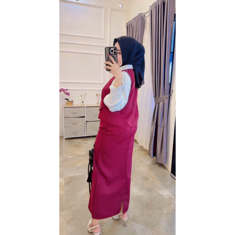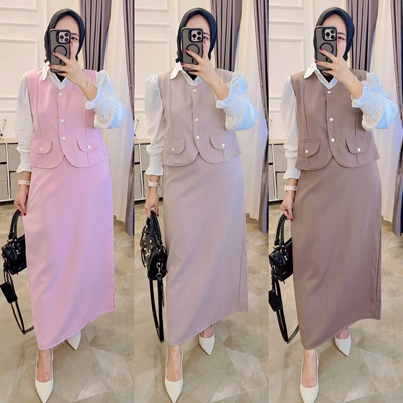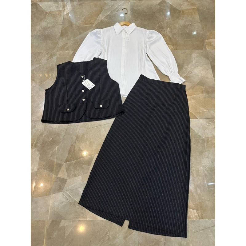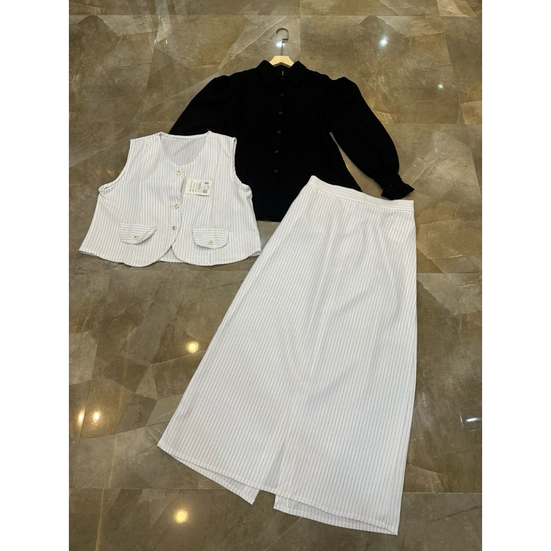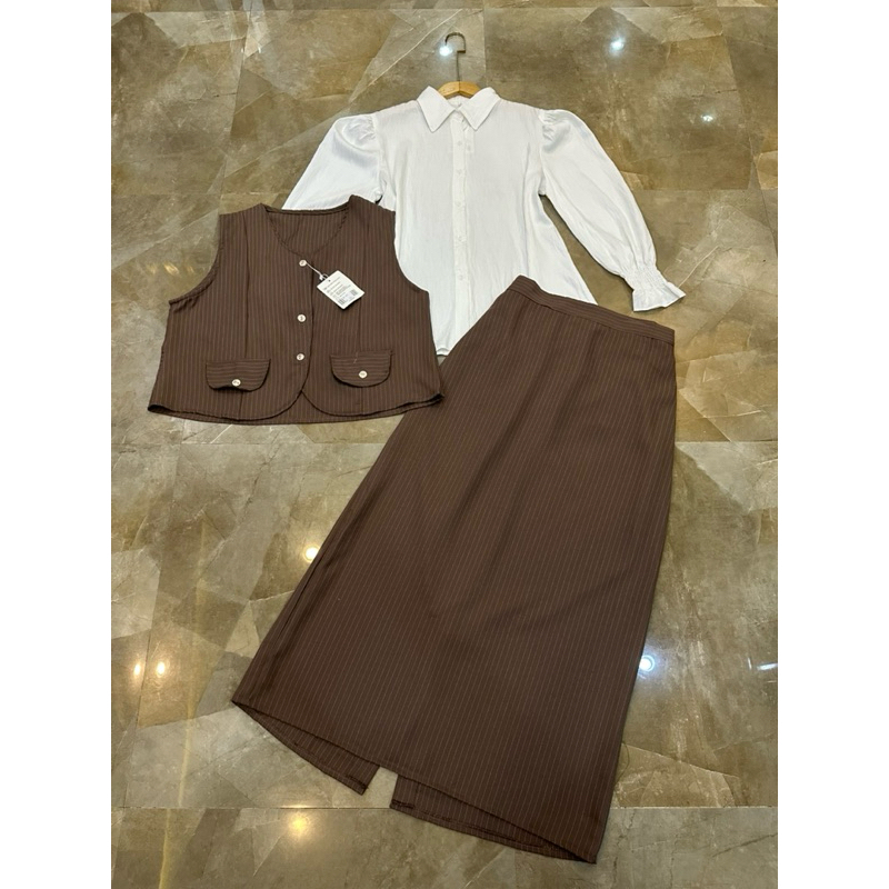 Fiar fashion setelan Nilata one set wanita rok span kantoran elegan motif salur premium