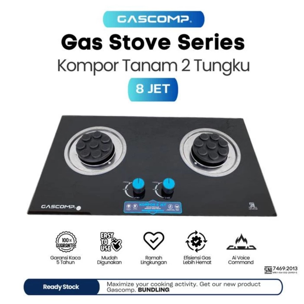 GASCOMP KOMPOR GAS TANAM KACA 2 TUNGKU 8 JET API BIRU
