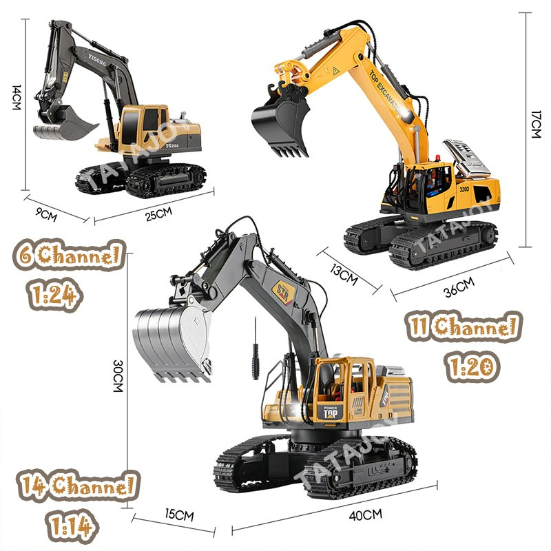 Tatajoy 1:14 Mainan Excavator Remote Control Besar 14Channel Ekskavator Mainan Anak 2.4Ghz 14Channel RC Excavator Kendar