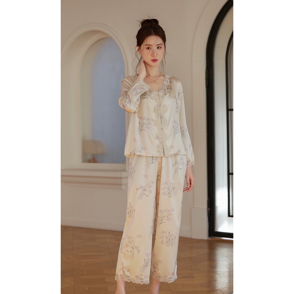 Sleepwear Viene Pajamas Sutra Bunga-Bunga S-L