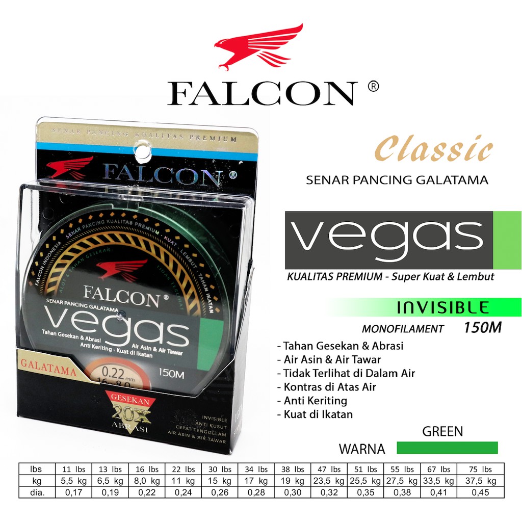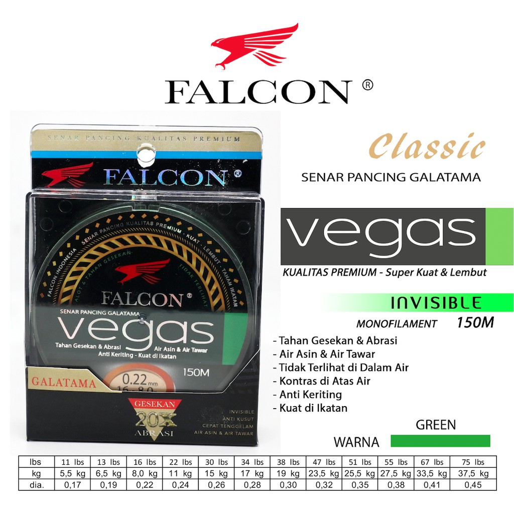 Senar Pancing Falcon Vegas 150 Meter Lembut Anti Keriting