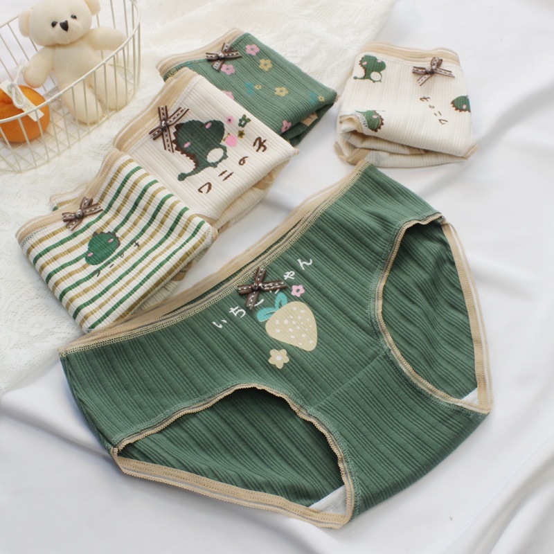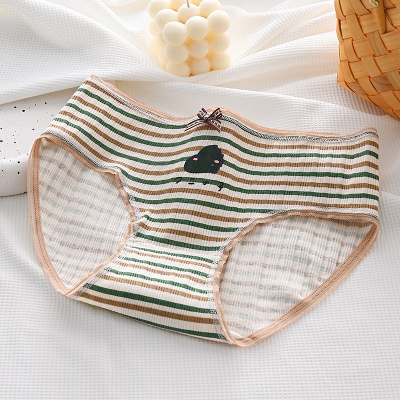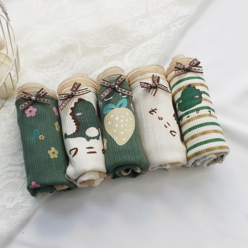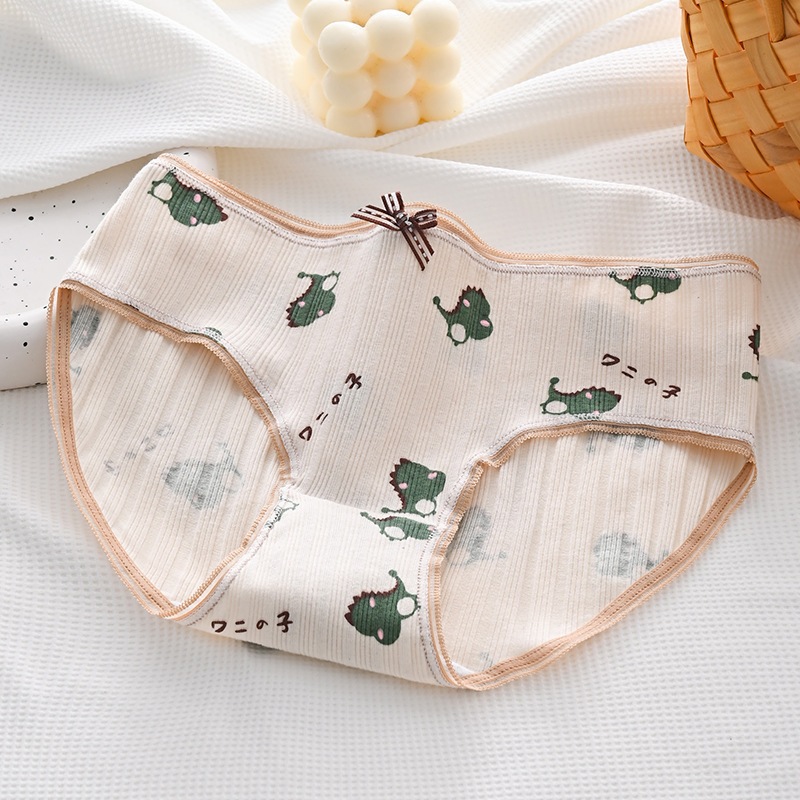 GOCD1591 CD Celana Dalam Wanita One Piece Dino Hijau Mulus Sutra Briefs Elastis Mid Waist Bahan Spandex Murah Gratis On