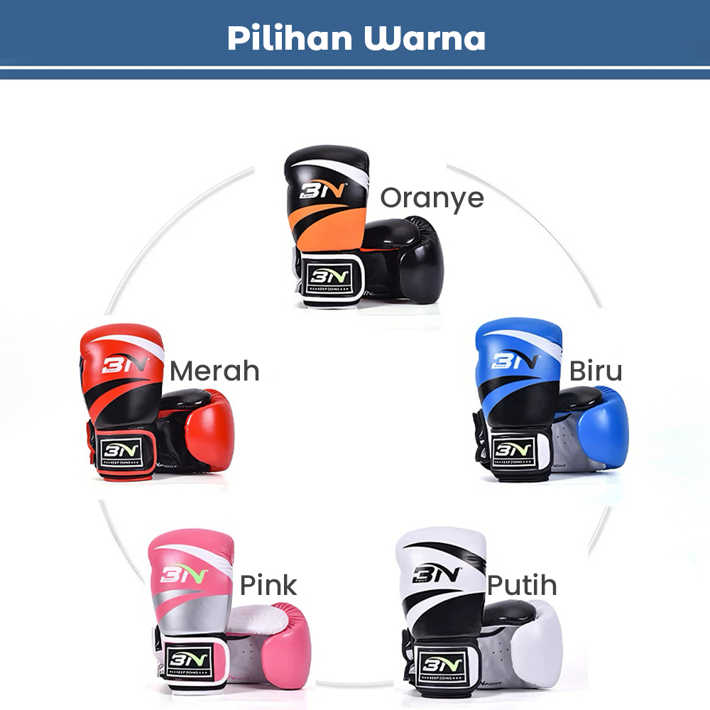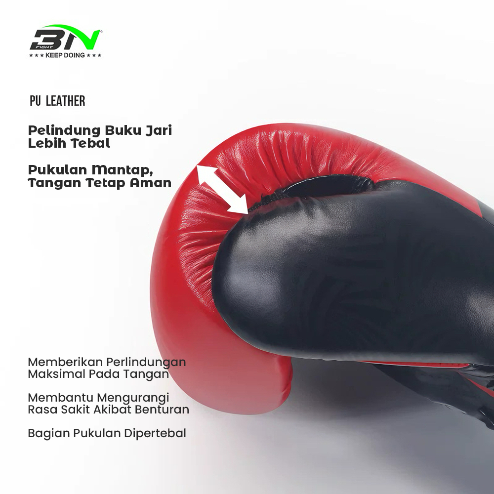 BN Fight Sarung Tangan Tinju 10OZ–12OZ | Boxing Gloves PU Leather | Sparring Latihan Boxing, Muay Thai, MMA, Kickboxing