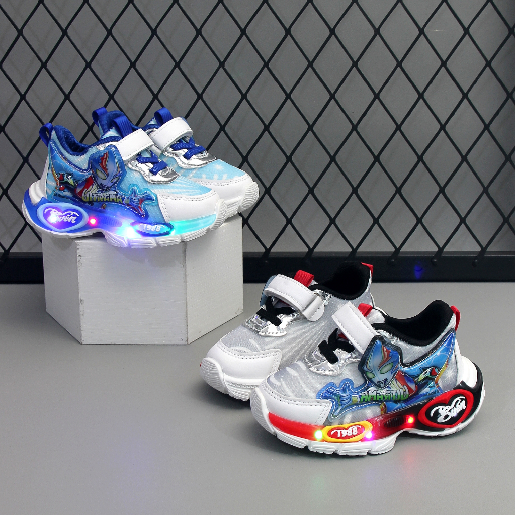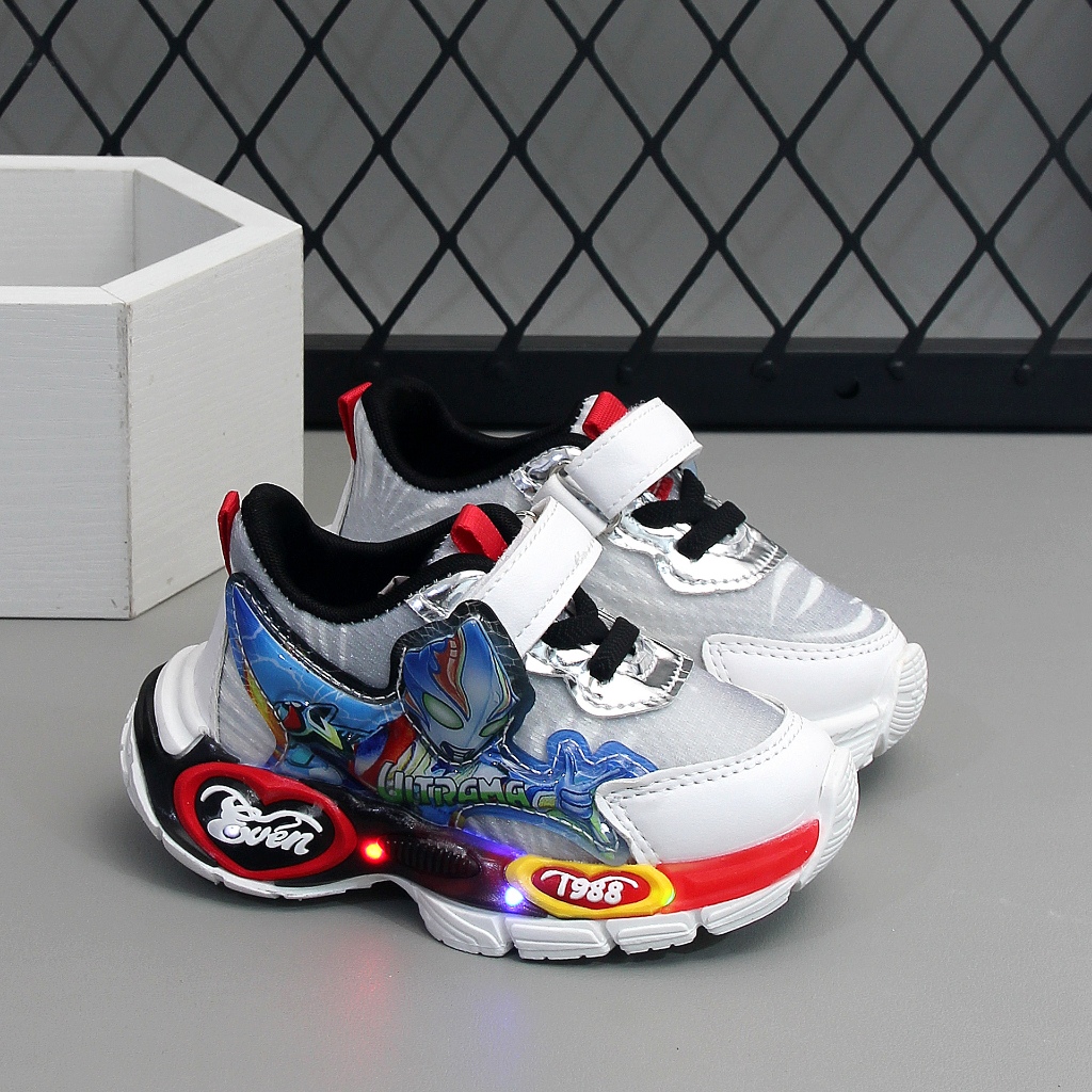 Sepatu Lampu Led Anak Lakilaki Sepatu Ultraman Merah Biru Ukuran 21-30 - FLT112