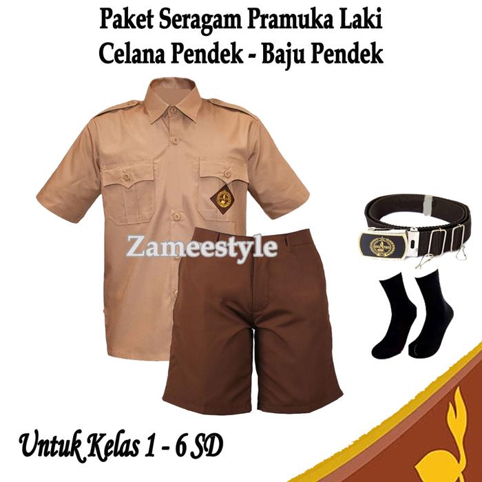 Paket Lengkap Setelan Seragam Anak Sekolah Pramuka Baju Pendek dan Celana Pendek Kelas 1-6 SD
