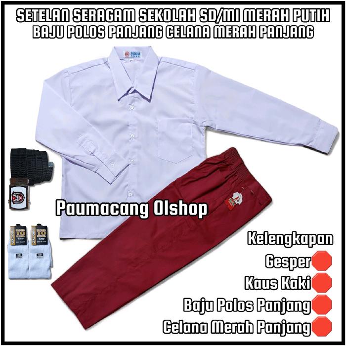 Setelan Seragam Sekolah SD/MI Putih Merah Anak Putra Baju Putih Polos Lengan Panjang Celana Merah