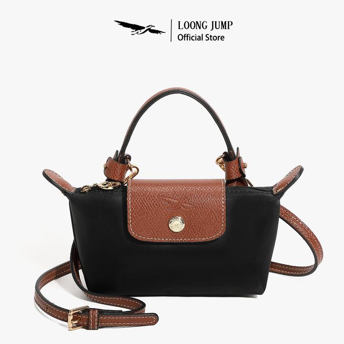 LOONG JUMP Mini Bag Nylon Sling Bag Tas Selempang Wanita Tas Tangan Coklat - Hitam