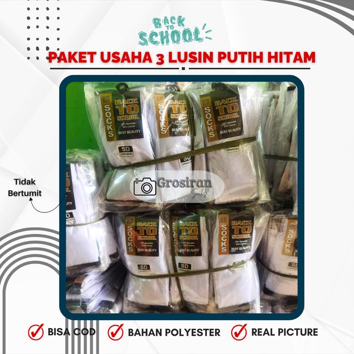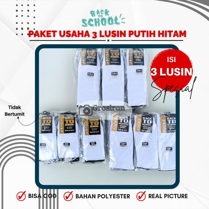 (3 LUSIN) Paket Usaha Kaos Kaki Anak Sd Smp Sma Putih Telapak Hitam-Kaos kaki anak seragam Sekolah