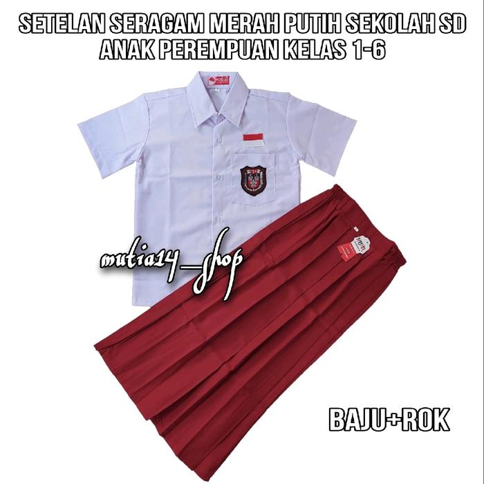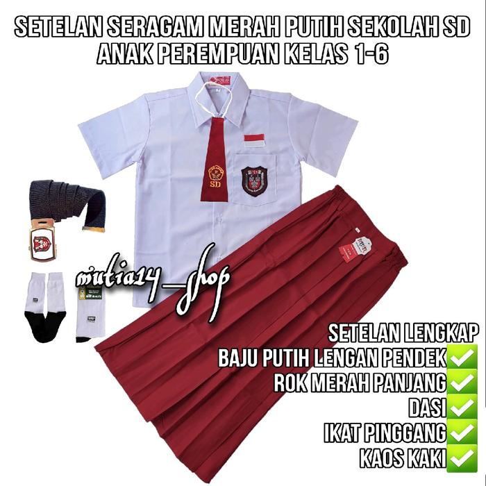 setelan seragam merah putih perempuan sd lengan pendek rok panjang / paket lengkap seragam sekolah