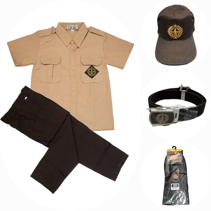 Setelan Seragam Sekolah SD Pramuka Penggalang Laki-laki Lengan Pendek Celana Panjang Super Lengkap