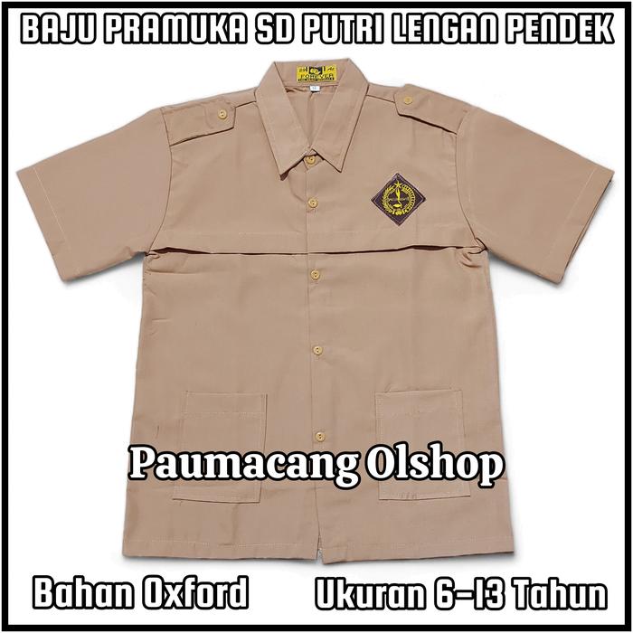 Setelan Seragam Sekolah SD Pramuka PUTRI Baju Pramuka Penggalang Lengan Pendek Rok Cokelat Panjang