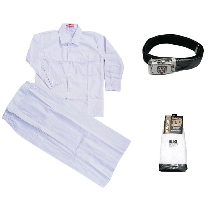 Seragam Sekolah MI Putih Polos Perempuan Lengan Panjang Rok Panjang Super Komplit Kelas 1-6 Seragam