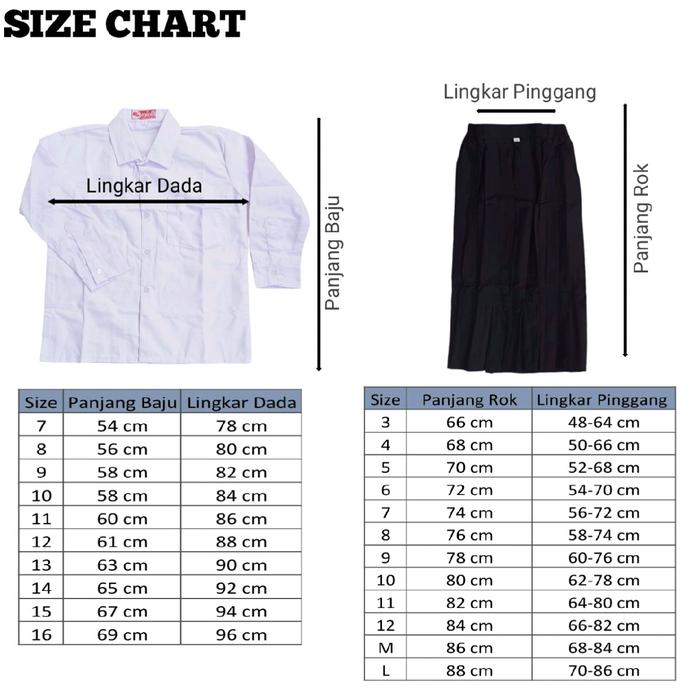 Seragam Sekolah MI Hitam Putih Perempuan Lengan Panjang Rok Panjang Super Komplit Kelas 1-6 Seragam