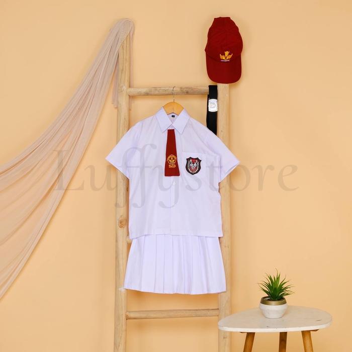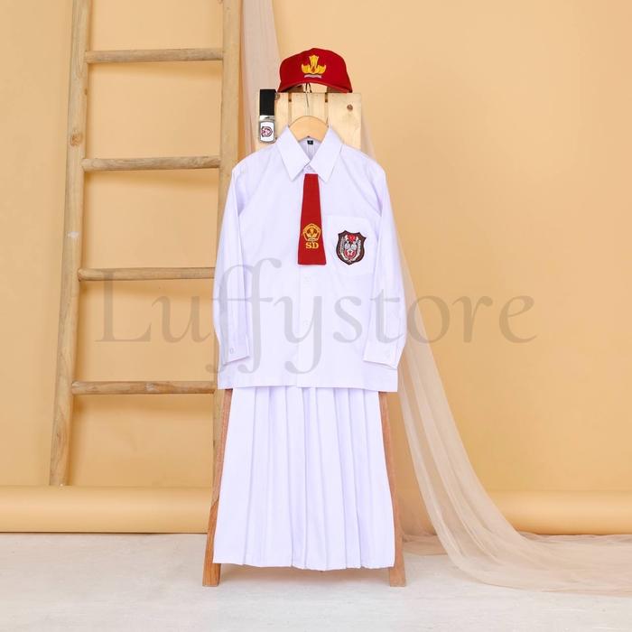 LUFFYSTORE - Setelan seragam SD putih putih anak perempuan lengan panjang dan pendek PROMO bisa