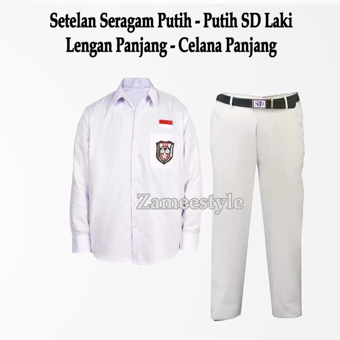 Paket Lengkap Setelan Seragam Anak Sekolah Putih-Putih Laki Baju Panjang dan Celana Panjang Kelas