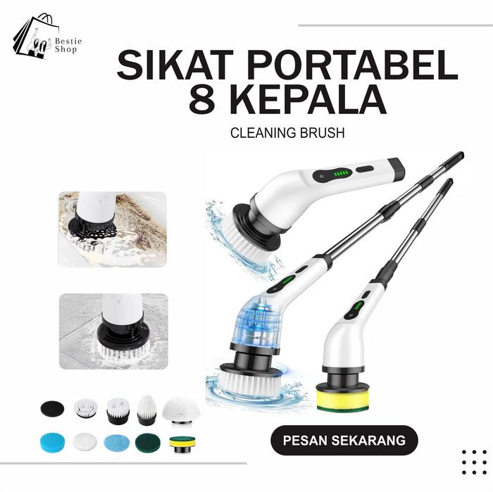 Sikat Pembersih Tanpa Kabel 8 Kepala Sikat / 8IN1 Portable Electric Cleaning Brush Electric Spin Scrubber
