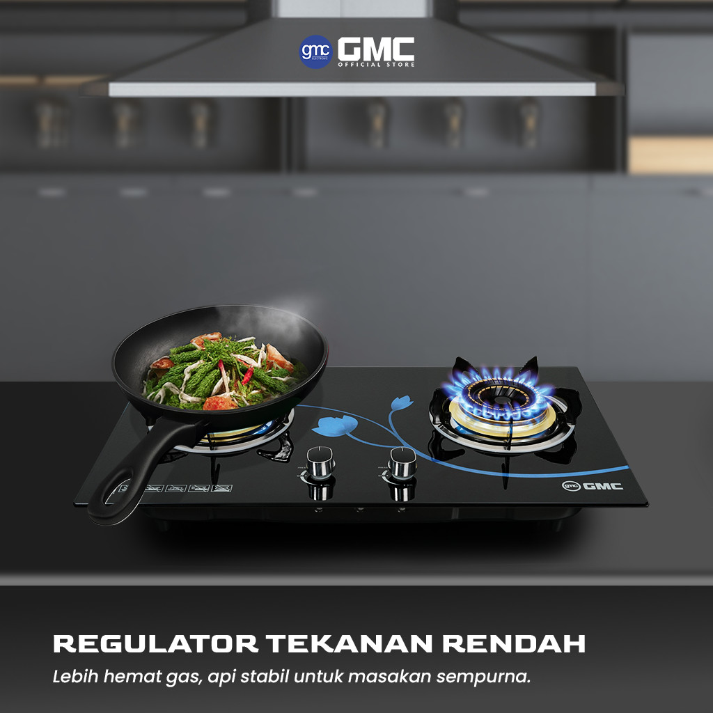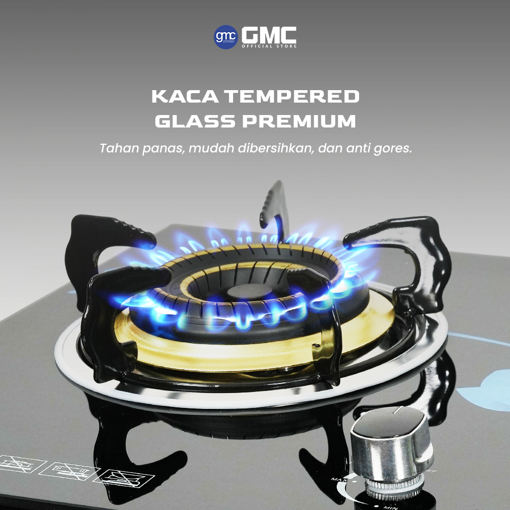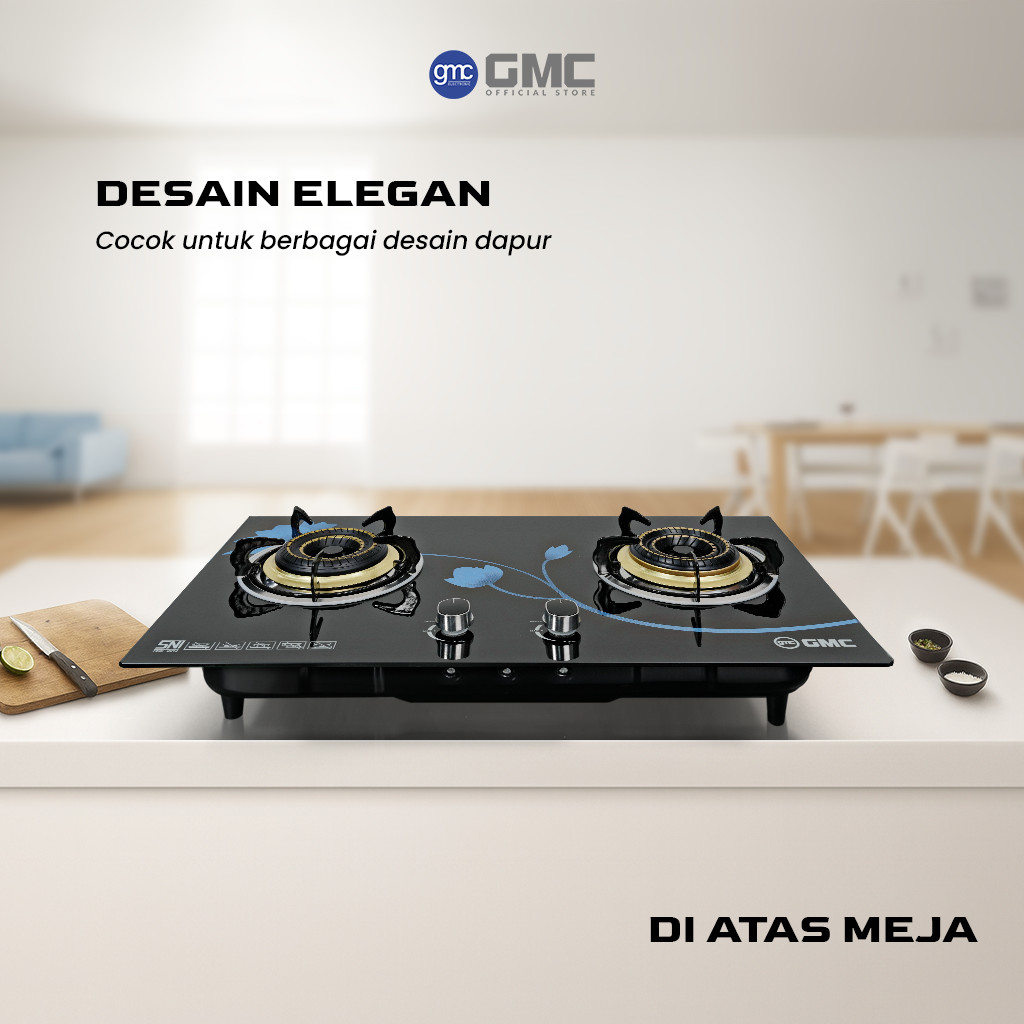 GMC Kompor Kaca 622 - 2 Tungku ,Tempered Glass Premium, Kompor Tanam & Atas Meja Api Biru Stabil