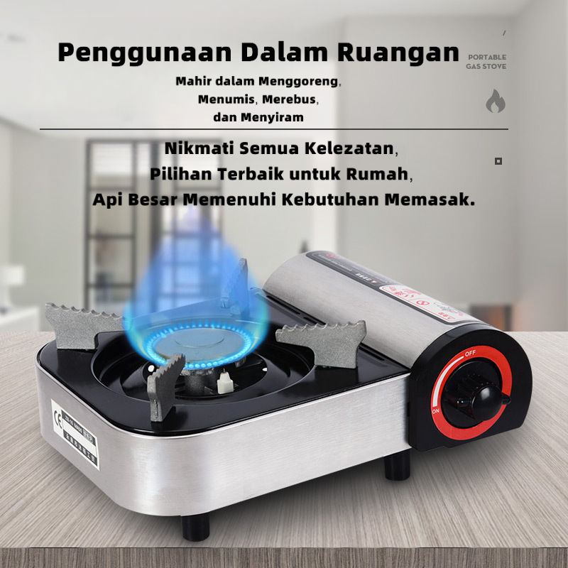 Kompor gas portabel, kompor butana mini, cocok untuk berkemah di luar ruangan, tahan angin, dan sempurna untuk hot pot, barbekyu, dan memasak.