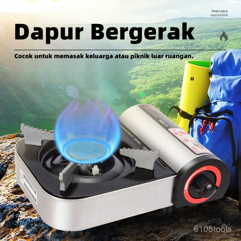 Kompor gas portabel, kompor butana mini, cocok untuk berkemah di luar ruangan, tahan angin, dan sempurna untuk hot pot, barbekyu, dan memasak.