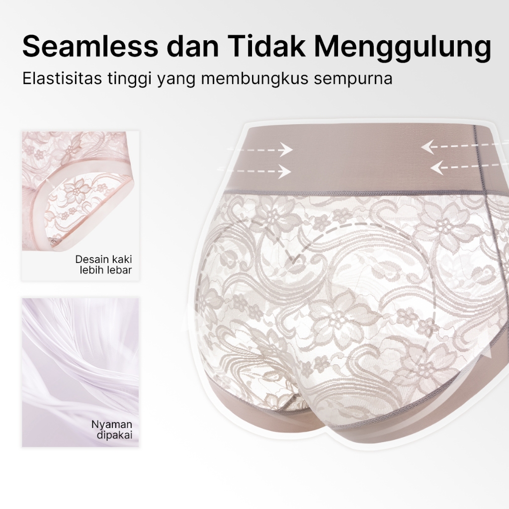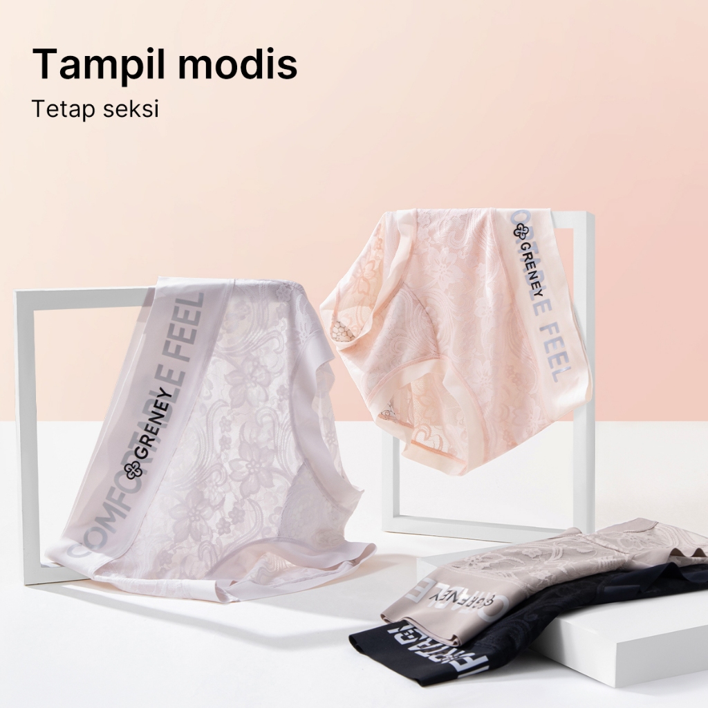 GRENEY-4Pcs CD Renda Pinggang Karet Huruf-Renda CD Fashion Breathable Huruf Paduan Selangkangan panjang Anti lembap Coco