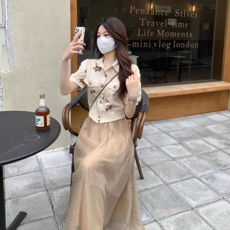 NAYOU - Elora Set Setelan Wanita Korean Look Bordir Bunga Cream