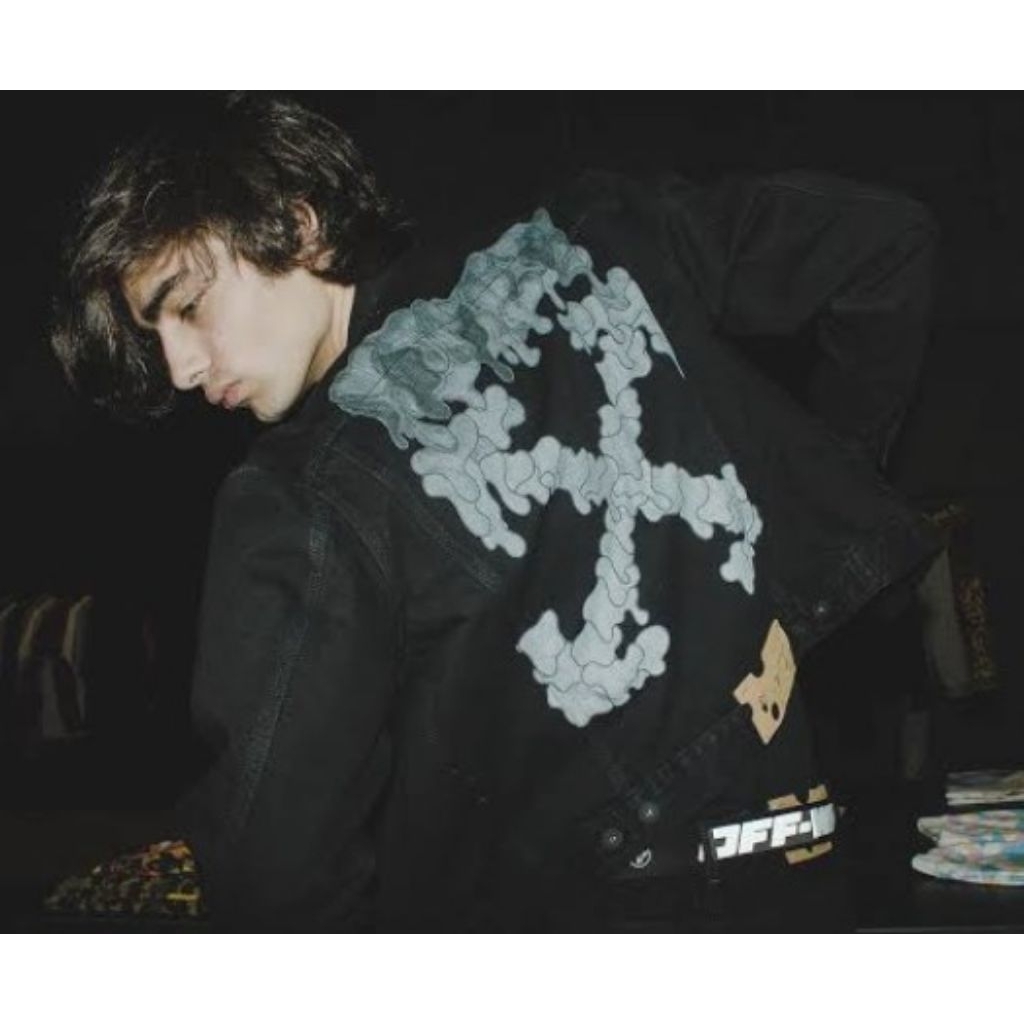 Of White Arrow Logo Back Print Denim Black