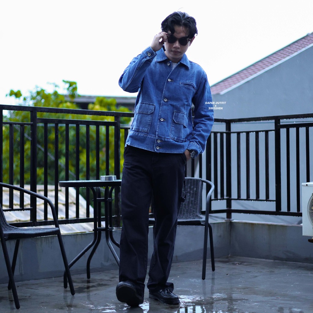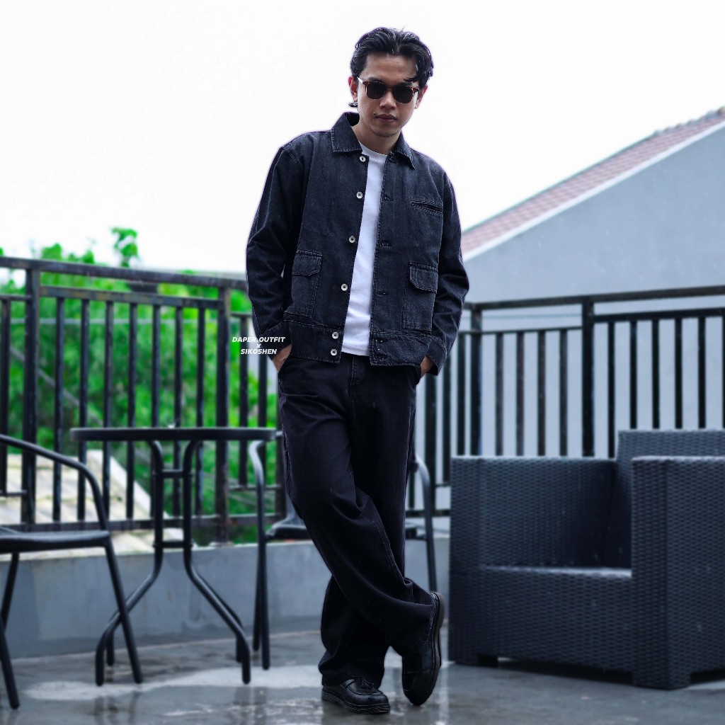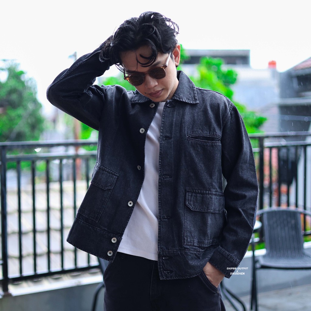 Tony Jack Work Jacket Denim Series - Jaket Jeans Boxy Fit Dark Grey