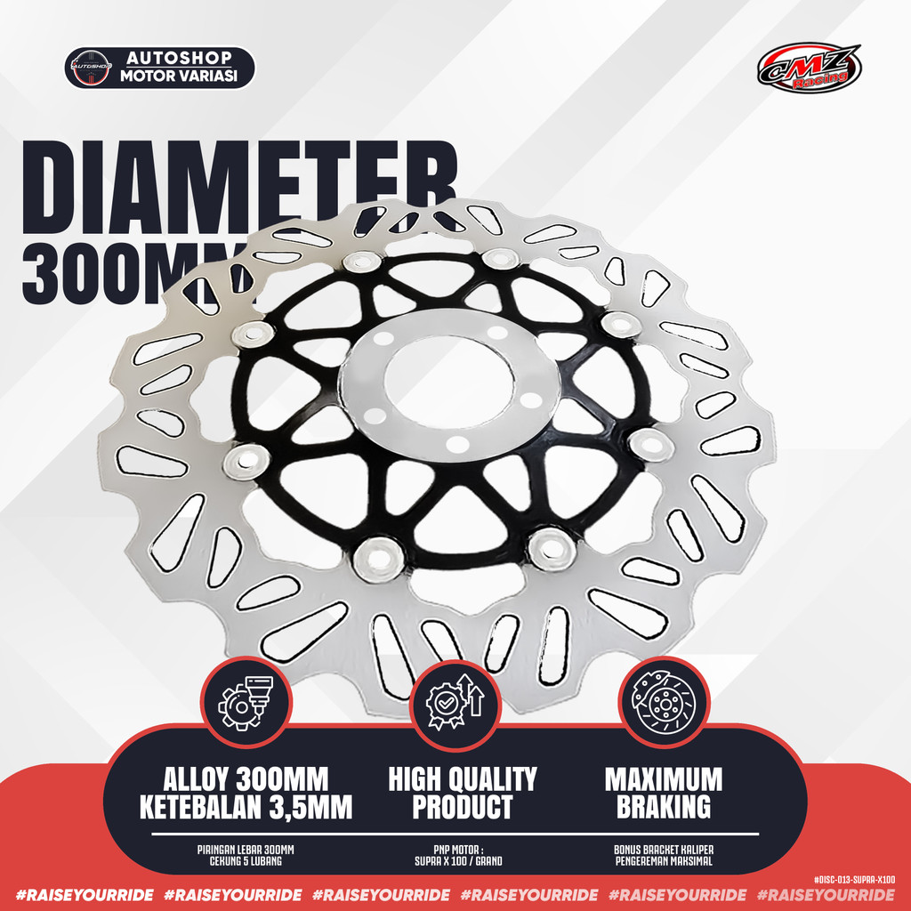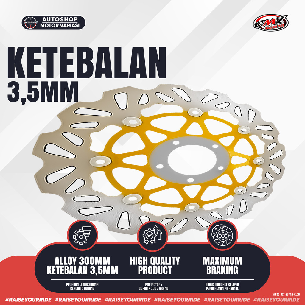 Piringan Cakram Depan 300mm Supra X Old Megapro Old PSM Cekung 5 Lubang + Bracket Kaliper