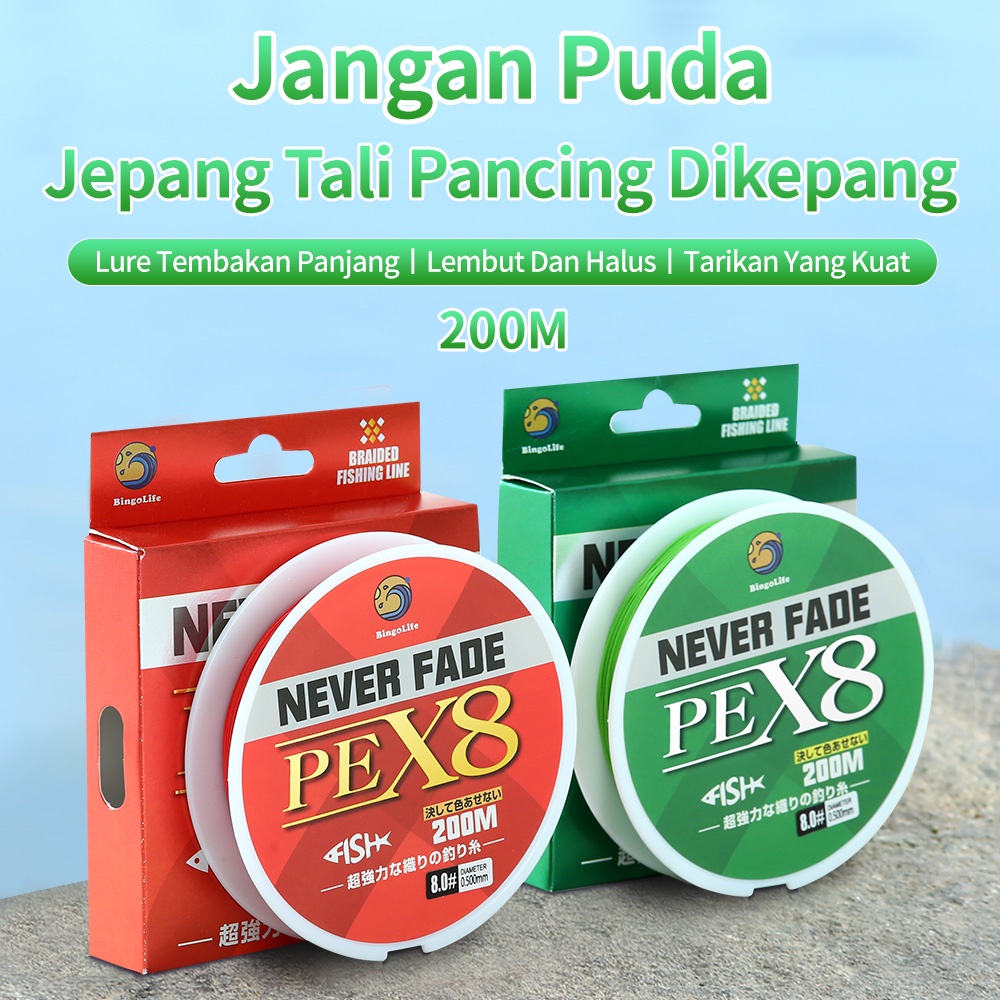 x8 PE 200m 8 Helai Pancing Dikepang Kuat Anti-Crizz Pancing Jepang Tidak Pernah Pudar