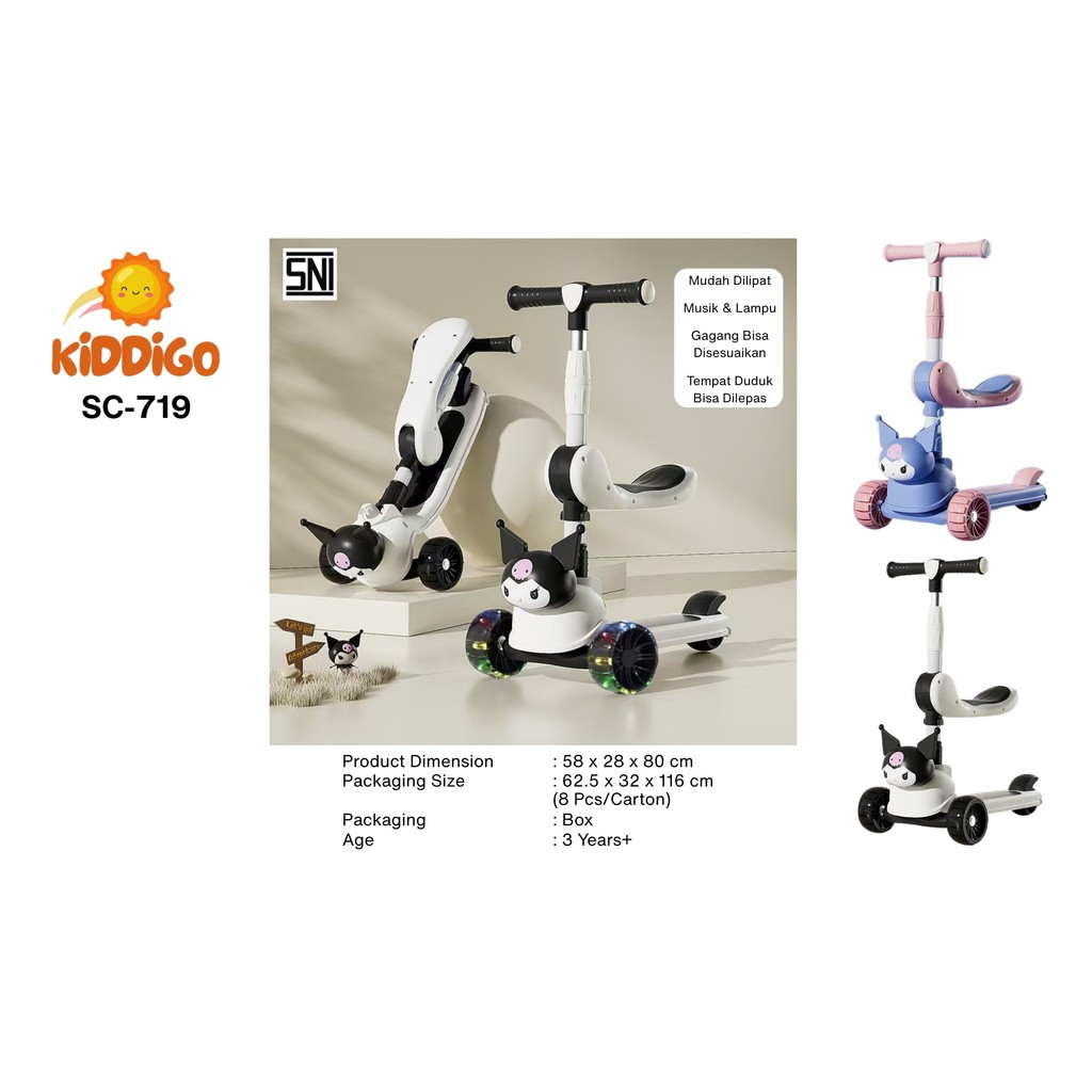 Skuter Anak 3 Roda Kuromi Bisa Lipat + Dudukan + Lampu Roda + Lampu dan Musik Scooter Roda 3 SC-719